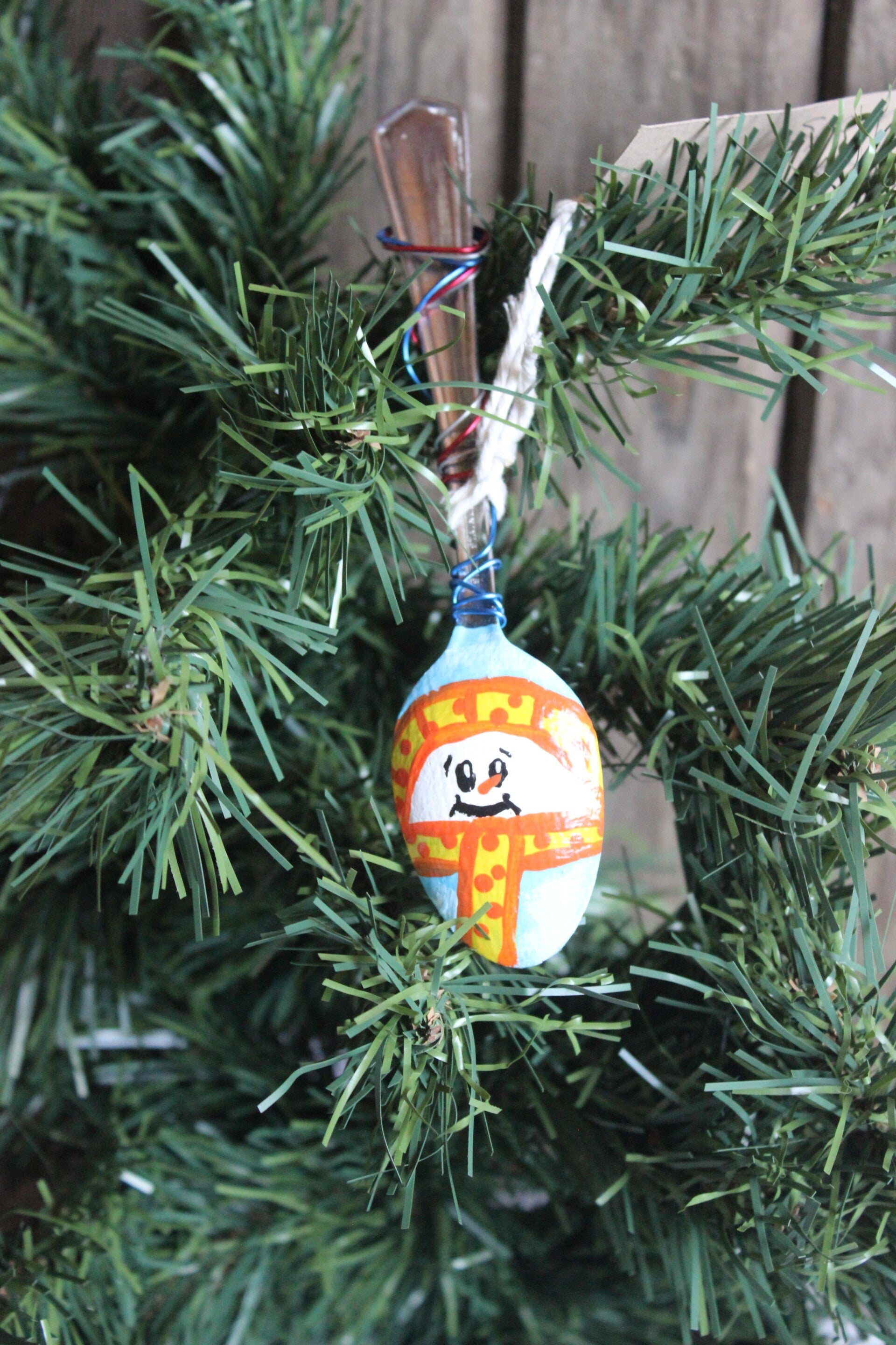 This is a repurposed teaspoon . It is hand painted and has a bent handle ready to help it hang on the tree.