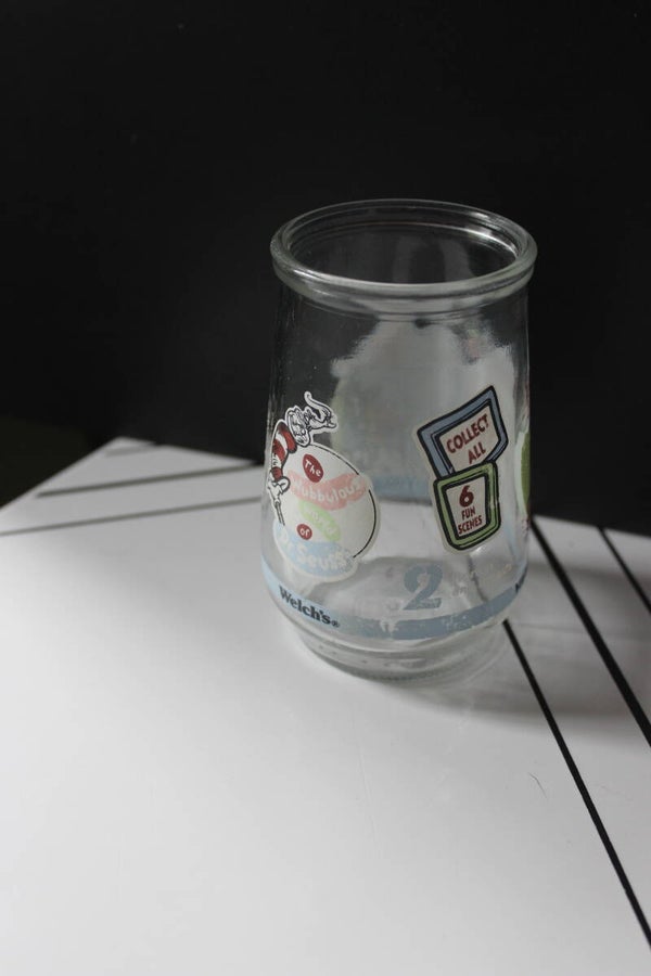 This is jelly jar juice glass that was issued by Welch's back in 1996. There is some scratches on the paint job, but there is no damage to the glass. It is marked #2 in the series.