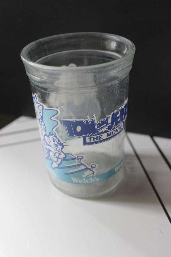 This is a jelly jar juice glass that was issued by Welch's in 1993. It has mostly blue in color. It has no problems with the paint or glass.