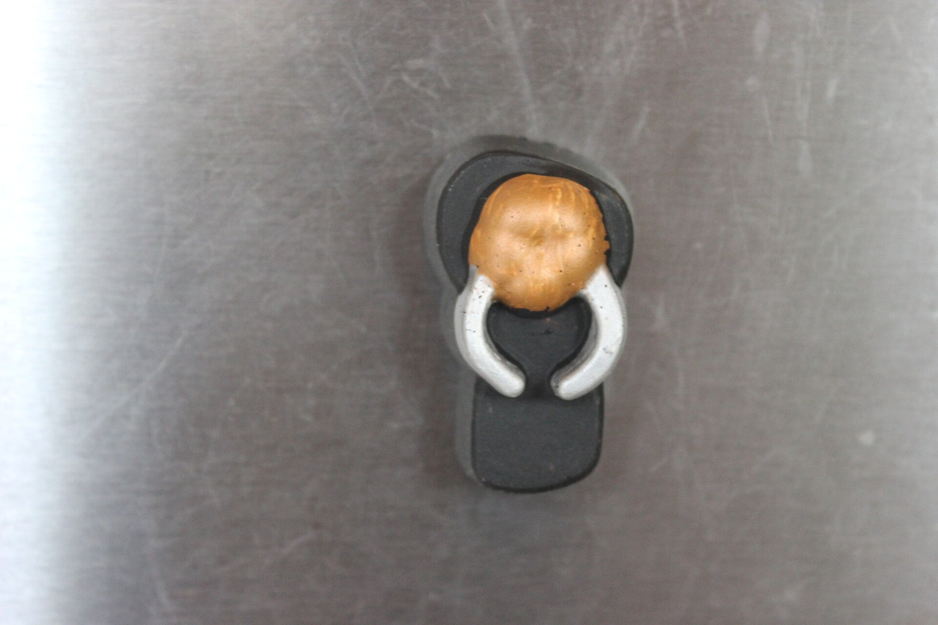 This is hand poured greenware magnet. It is also hand painted and then spray glazed for protection.