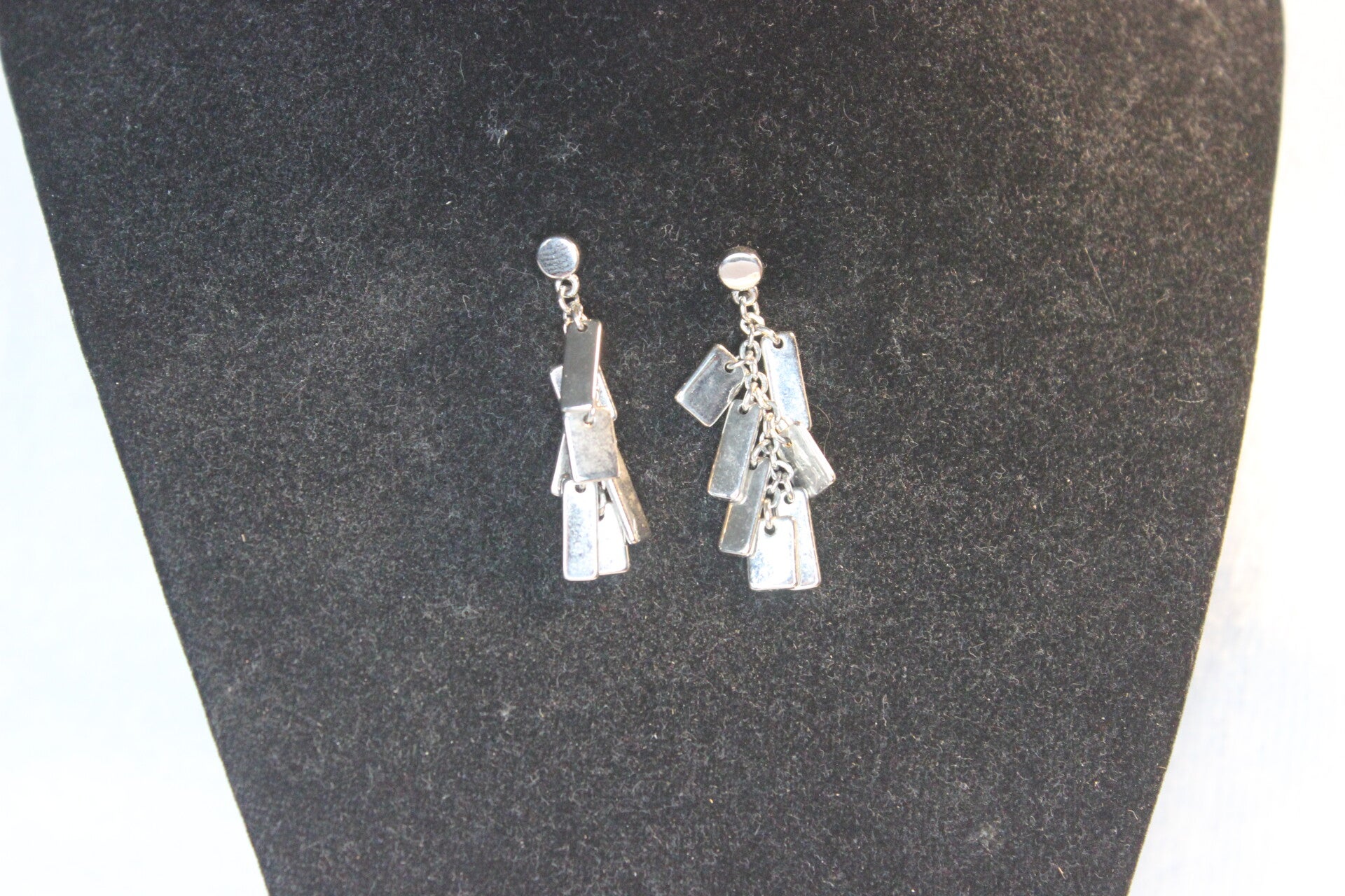 These dangel about one inch from the lobe. They have a metal post and backing.