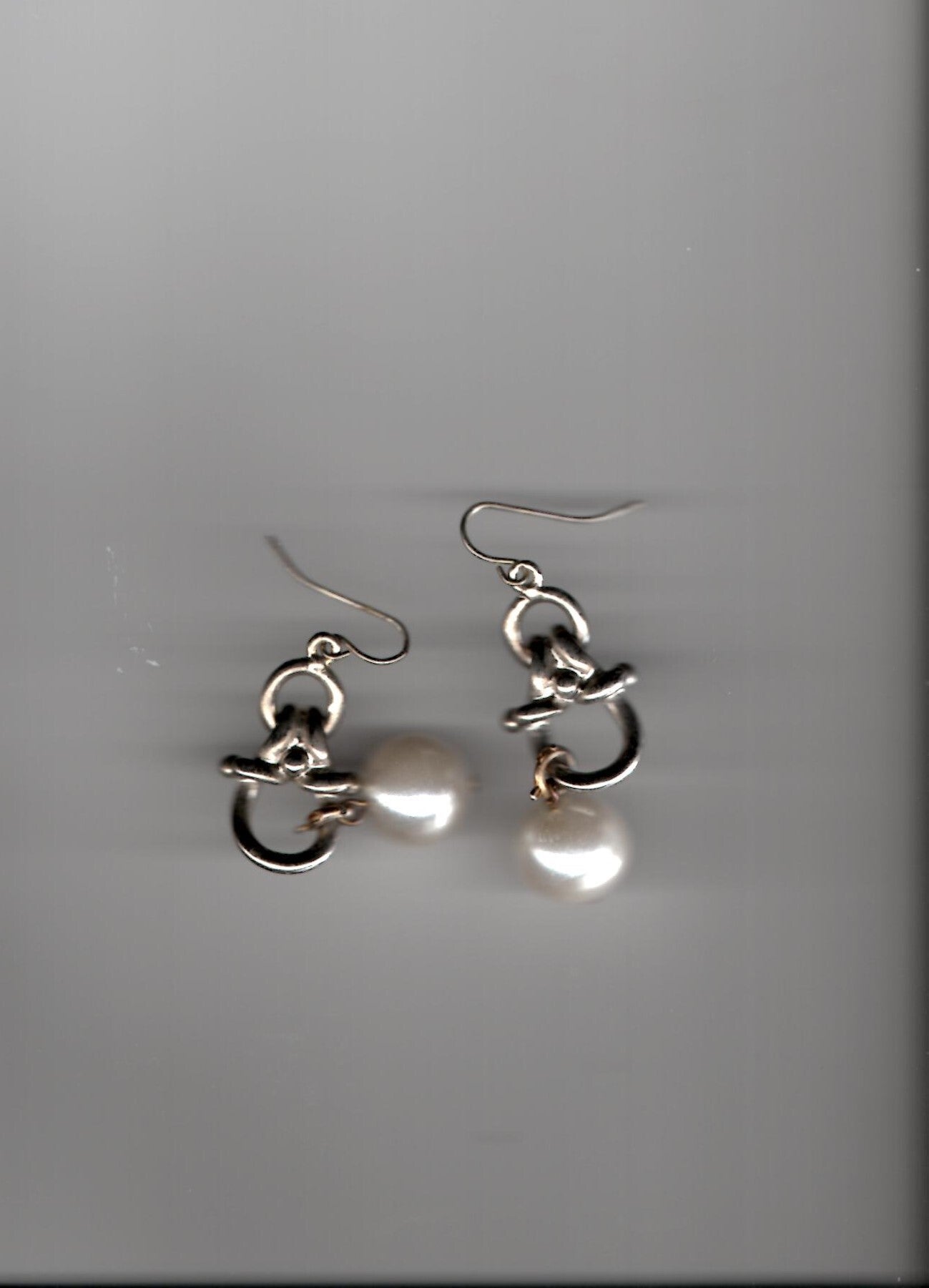 These are like new vintage earrings. They dangle about 1.5 inches for the lobe. The hanger is metal as well. The pearls are Faux. And about the size of a dime.