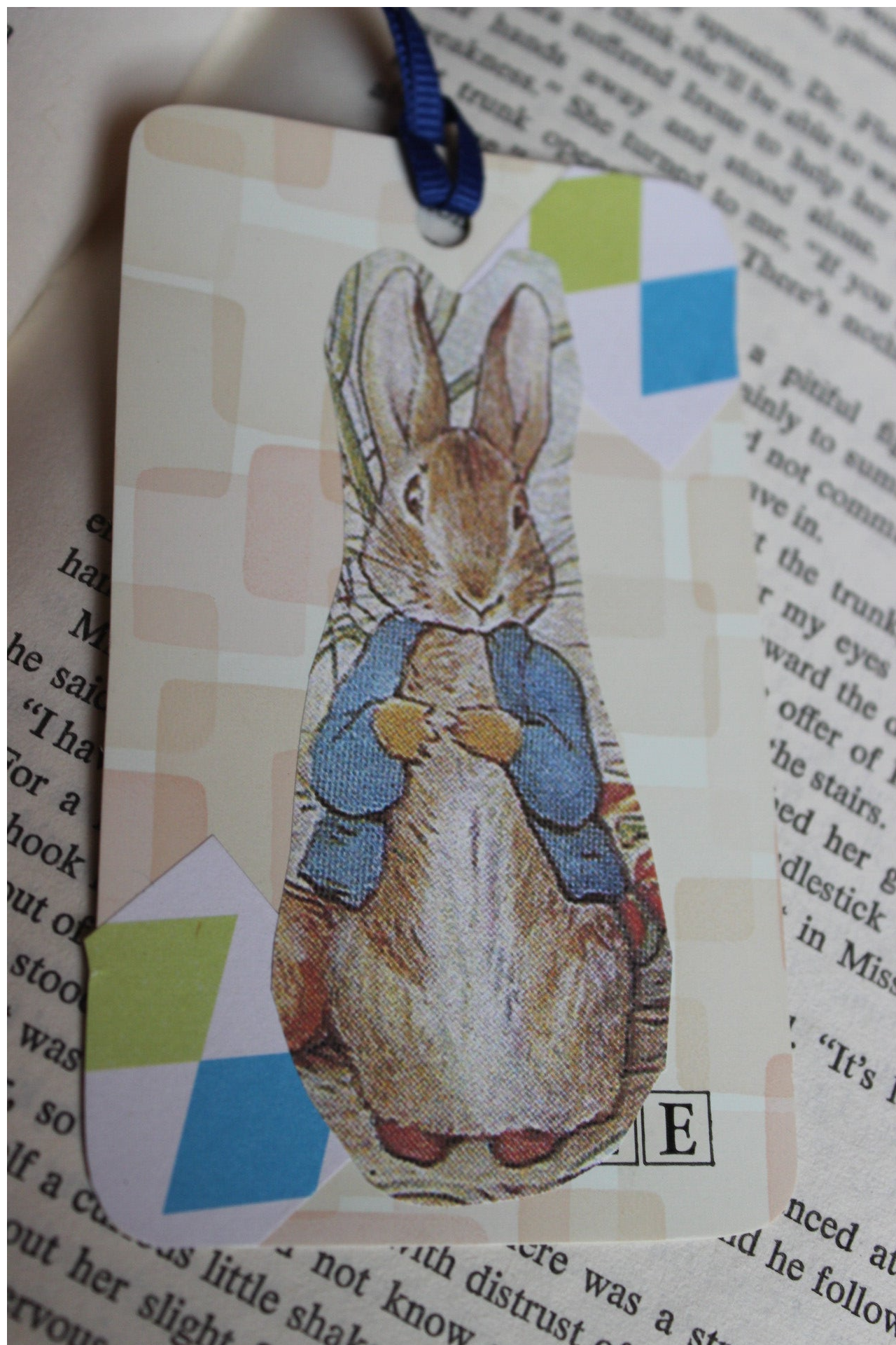 This is a bookmark upcycled from a vintage formica sample it has a image attached to the front and has a ribbon dangle. It is a soft paper like sample.